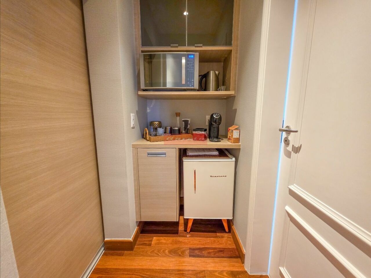 Os acabamentos incluem armários Florense, piso em madeira Indusparquet, ar-condicionados novos nos dormitórios, metais dos banheiros substituídos em 2022 e pias em silestone.