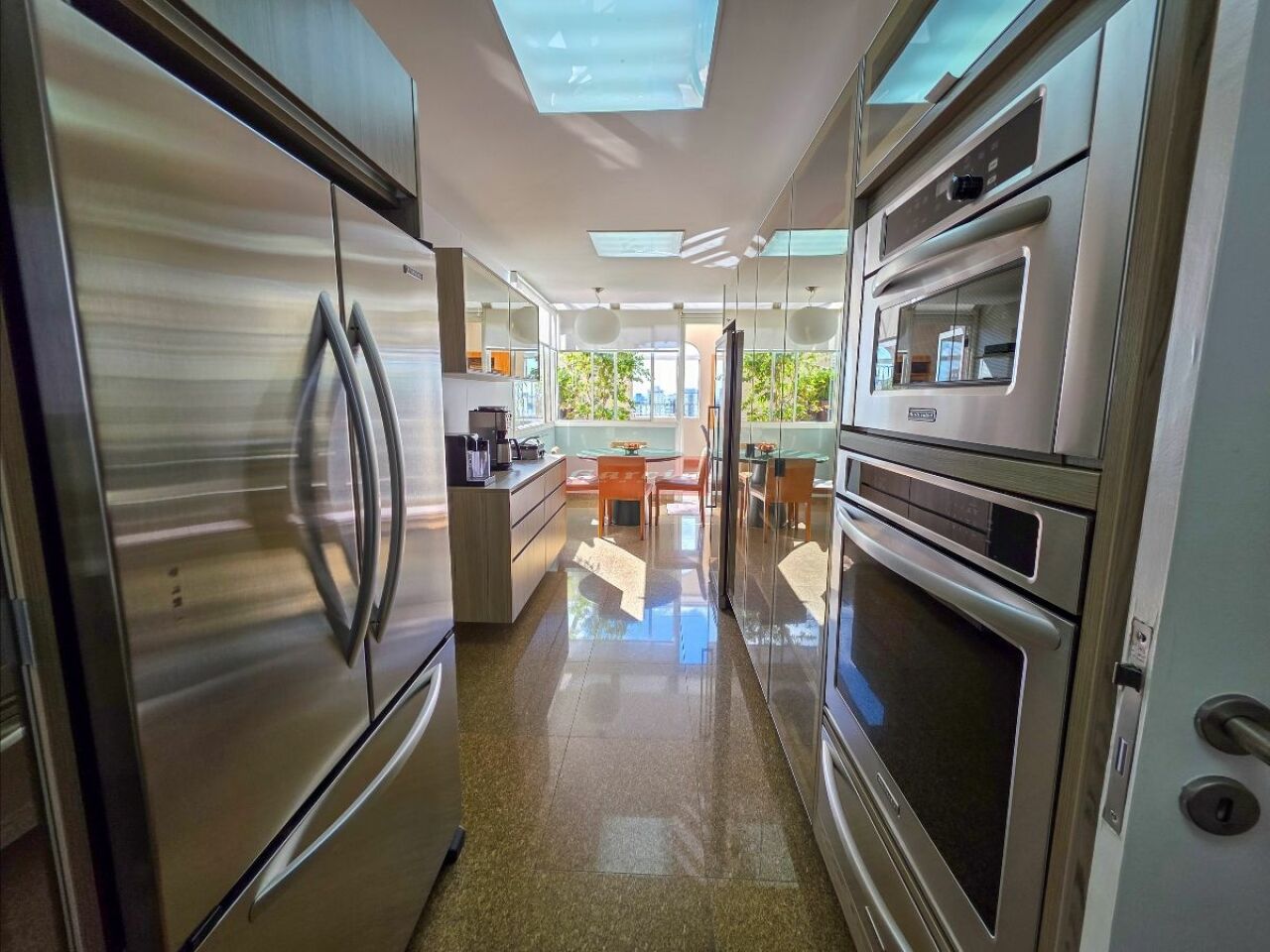 A cozinha está equipada com eletrodomésticos KitchenAid, todos permanecem no imóvel.