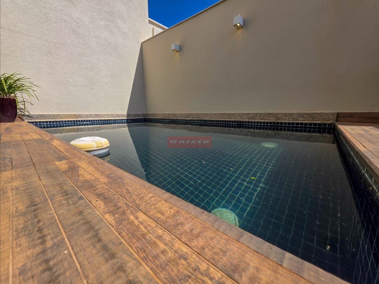 Cobertura assobradada: a configuração com a área social e a piscina no piso inferior torna os ambientes mais integrados e práticos no dia a dia, além de ampliar a sensação de espaço.